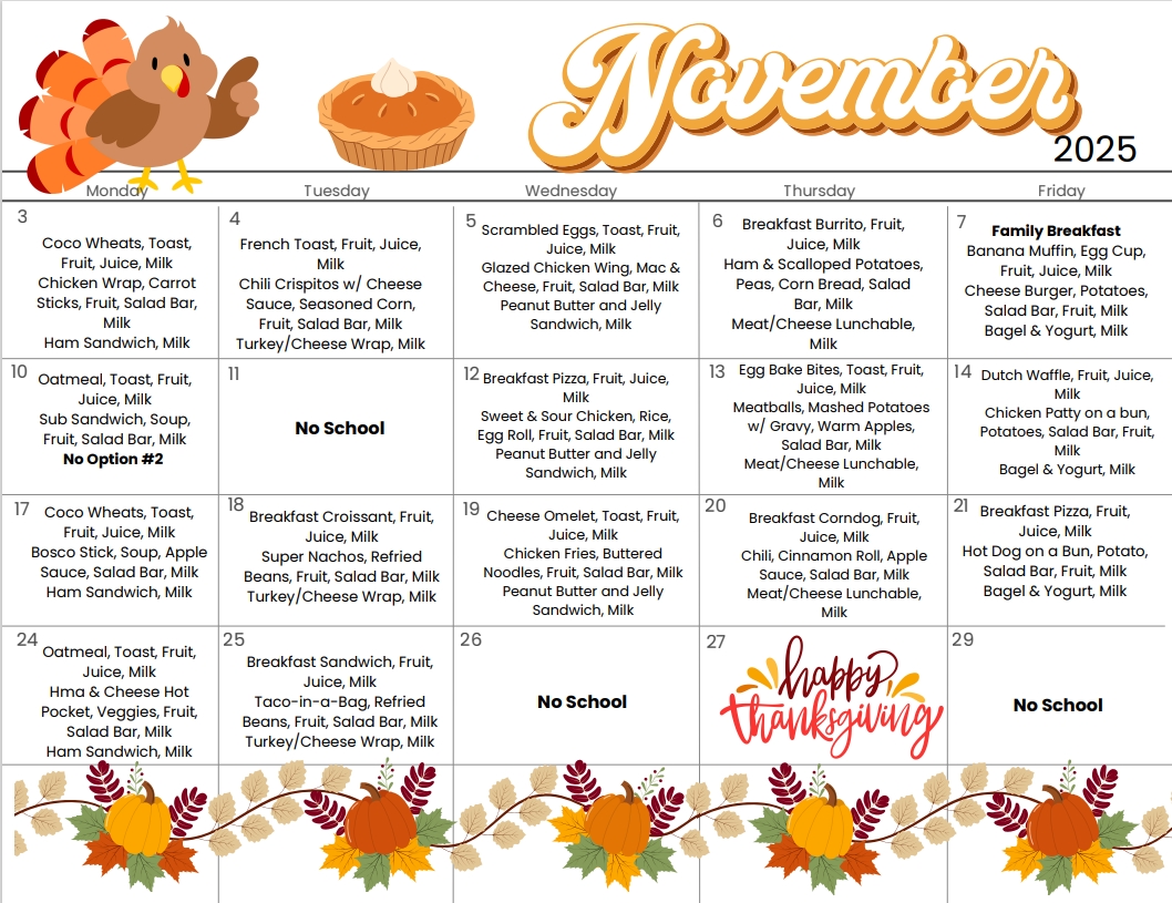 If an adult would like to eat school breakfast or lunch, they need to call 24 hours in advance. We cannot provide meals for visitors unless they call a day ahead of time.